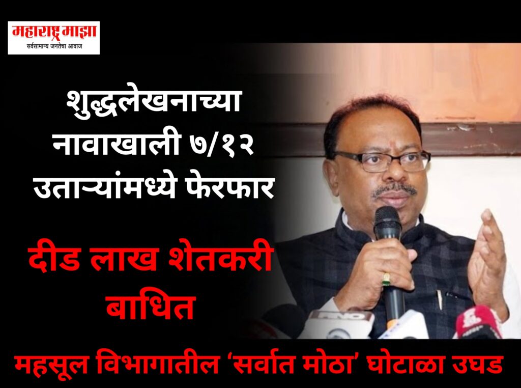शुद्धलेखनाच्या नावाखाली ७/१२ उताऱ्यांमध्ये फेरफार; महसूल विभागातील ‘सर्वात मोठा’ घोटाळा उघड – दीड लाख शेतकरी बाधित