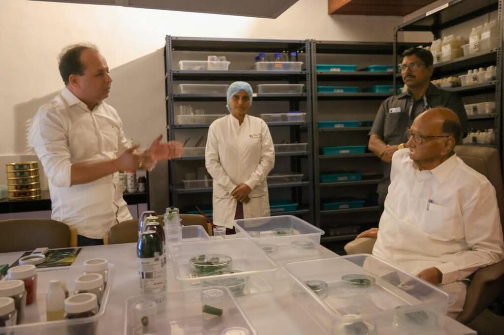 माजी केंद्रीय कृषिमंत्री शरद पवार यांनी पत्नी प्रतिभाताई पवार यांच्यासह सोमवार दिनांक १९ मे २०२५ रोजी फलटण येथील के. बी. एक्सपोर्ट व के. बी. बायो ऑरगॅनिक्स या दोन कृषी क्षेत्रातील अनुक्रमे निर्यात व वनस्पतीजन्य आधारित कीटकनाशकांच्या क्षेत्रात अग्रगण्य असणाऱ्या कंपनीस भेट दिली यावेळी ते बोलत होते.शेतकरी बांधवांना शेतीविषयक सखोल ज्ञान, अचूक मार्गदर्शन व शास्त्रशुद्ध मार्गदर्शन करून उद्याच्या भविष्याचा विचार करता विषमुक्त शेती म्हणजेच सेंद्रिय शेती पिकवण्यासाठी तसेच निर्यातक्षम व भरघोस उत्पादन मिळवण्याची नवसंजीवनी देणारी तसेच वनस्पतीजन्य आधारित कीटकनाशके व खतांची निर्मिती करणारी भारतातील प्रथम व अग्रगण्य कंपनी म्हणजेच के.बी. बायो ऑरगॅनिक्स असून १९६२ मध्ये भारत देशात हरित क्रांतीची सुरुवात झाली.