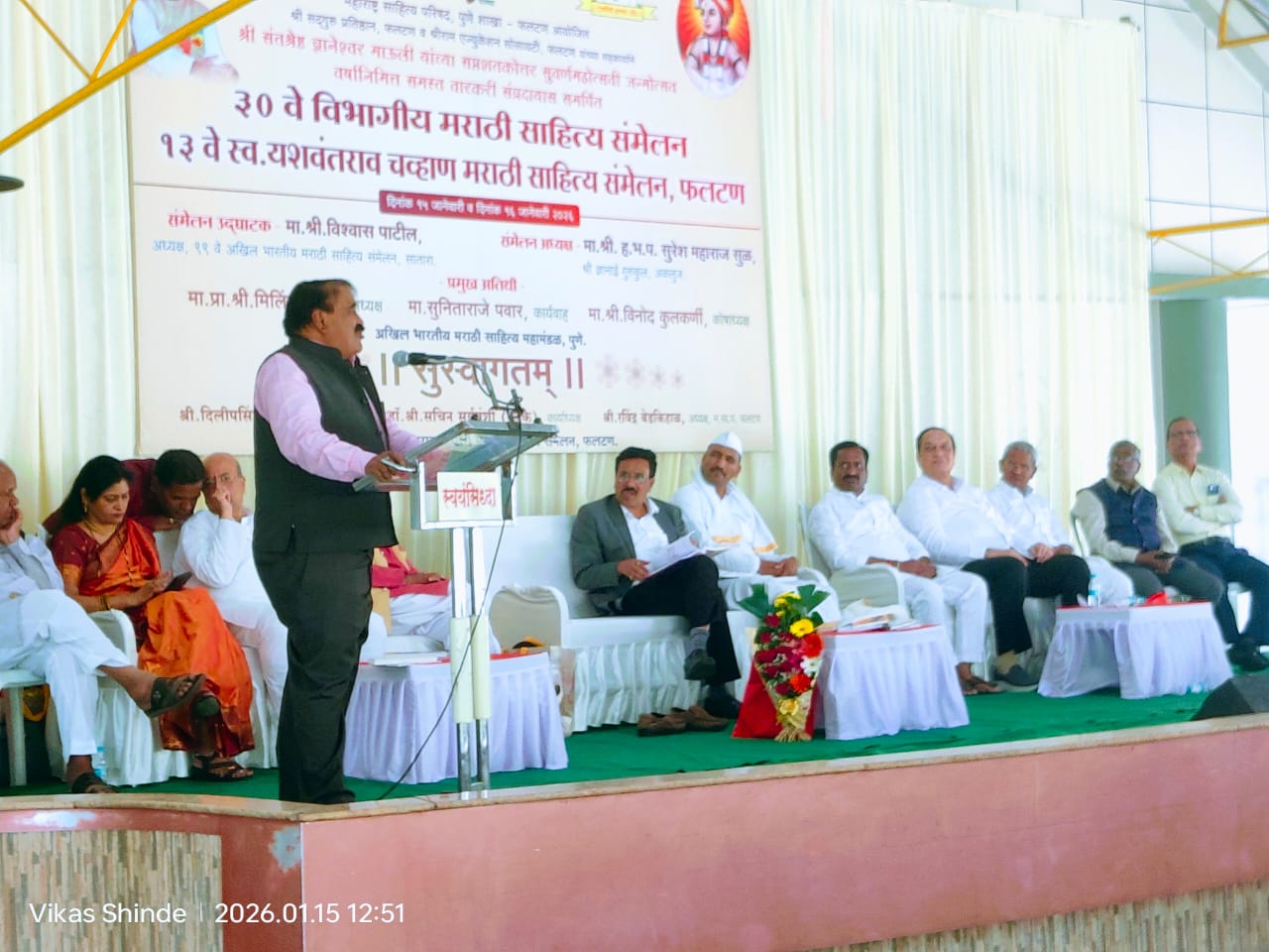 वारकरी संप्रदायाला समर्पित ३० वे विभागीय साहित्य संमेलन व १४ वे स्व. यशवंतराव चव्हाण साहित्य संमेलन फलटण येथे पार पडले. या संमेलनाच्या उद्घाटनप्रसंगी ते बोलत होते.पाटील म्हणाले, “शेतकरी आत्महत्यांवर आधारित साहित्य अपेक्षेइतके निर्माण झालेले नाही. आपण कोरोना महामारीसारख्या भयानक संकटावर मात करू शकलो, तर शेतकऱ्यांच्या आत्महत्या का रोखू शकत नाही? हा प्रश्न केवळ प्रशासनाचा नाही, तर संवेदनशील समाजमन घडवणाऱ्या साहित्यिकांचाही आहे.